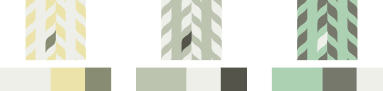 くすんだ赤やブルーグリーン、マスタードを組み合わせた配色パターン。