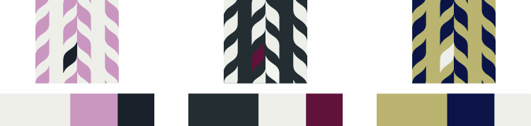 クラウド・ダンサーの静かなホワイトに、上品なピンクや深みのあるネイビーを加えた配色パターン。シンプルながらも都会的で、洗練された大人の上質感を感じさせる配色です。