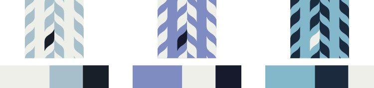 グレーやブルーを組み合わせた、静けさと透明感を感じる配色パターン。ミニマルな印象で、空気の澄んだ朝や静かな空間を思わせる、落ち着きのある配色パターンです。