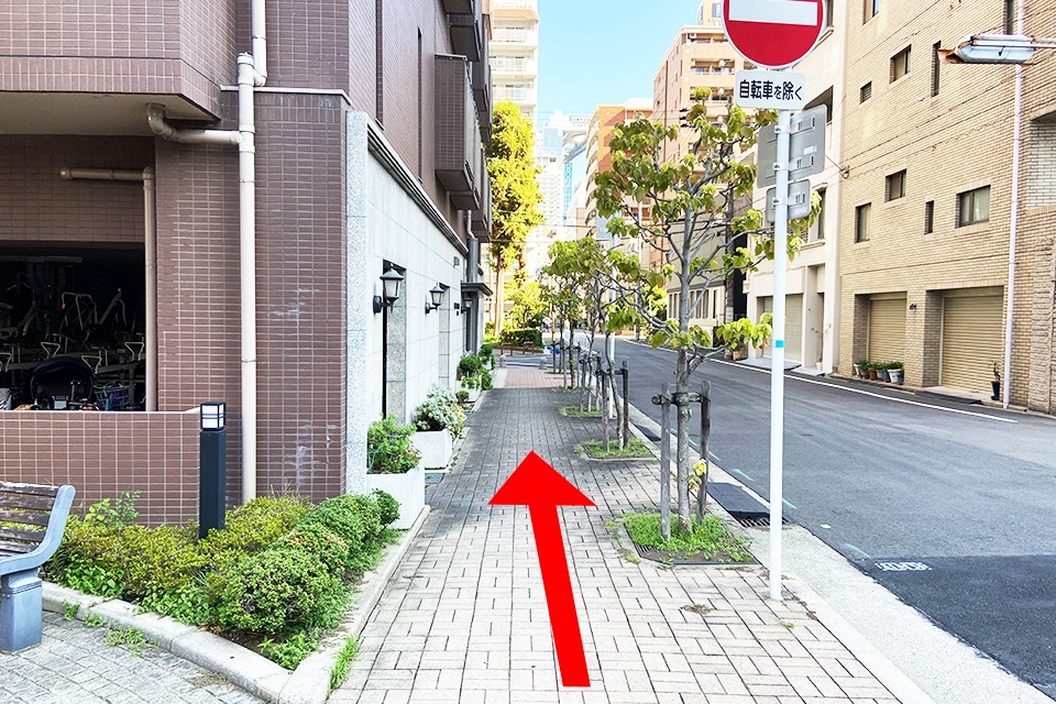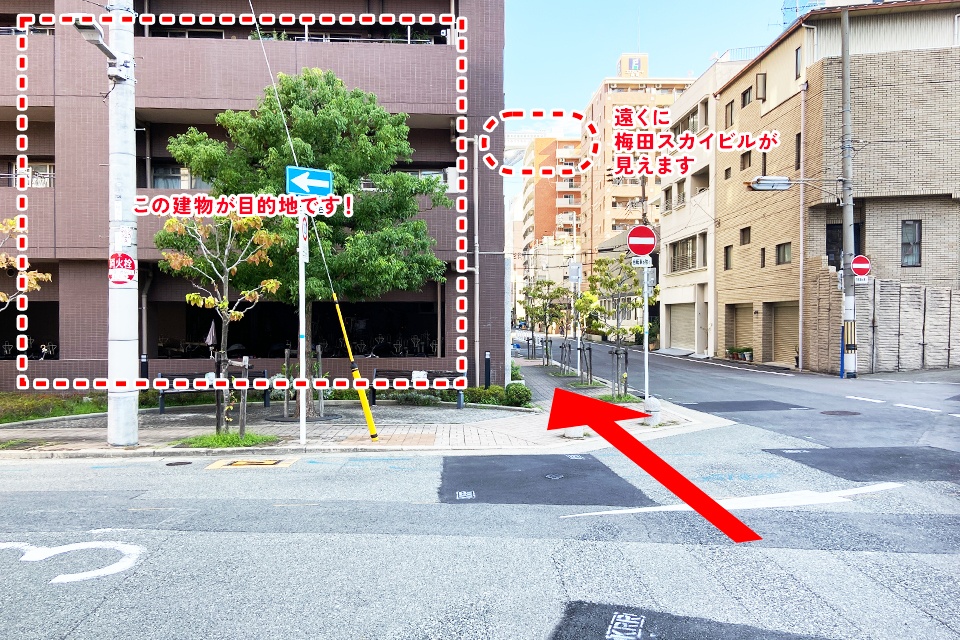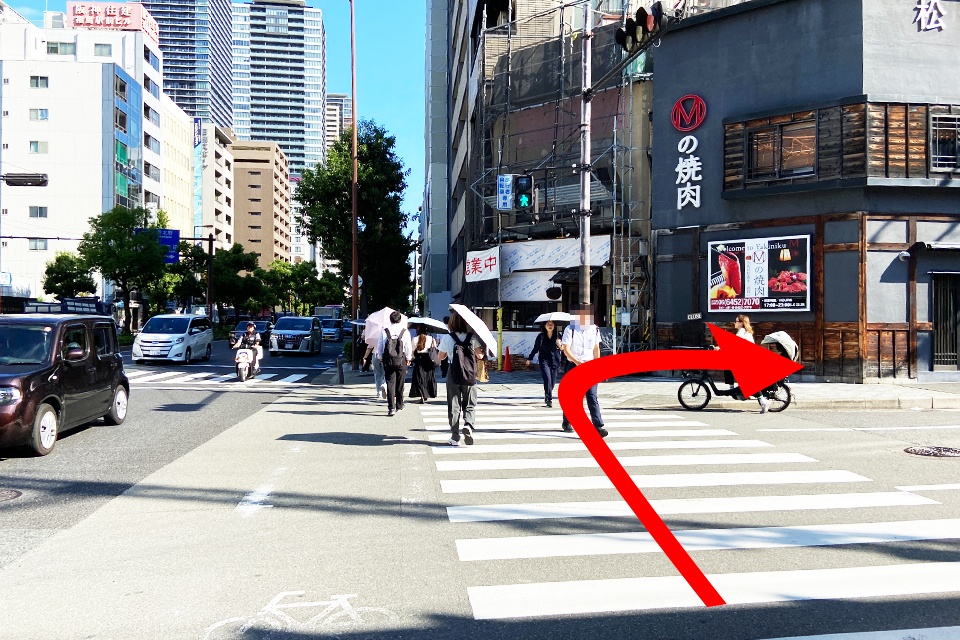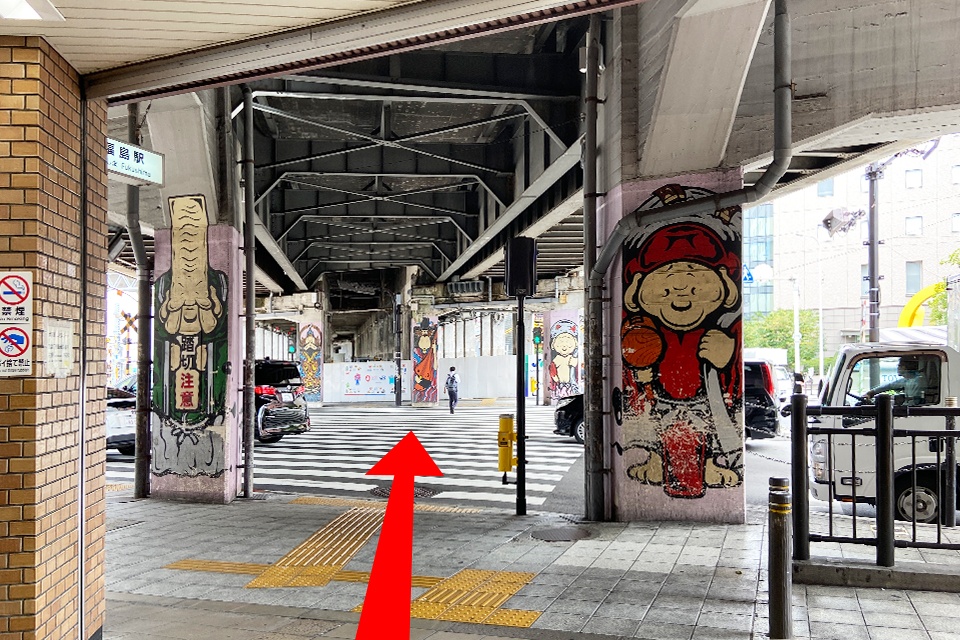 【03】改札を出たら、正面の横断歩道へ進んでください