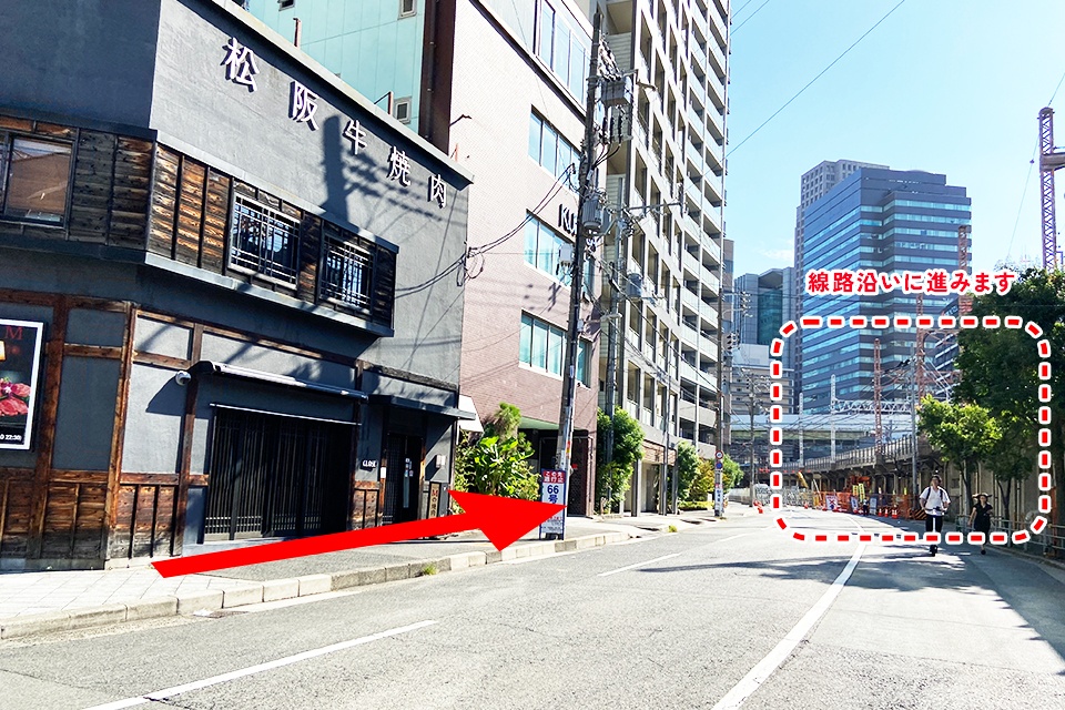 【09】 右手にJRの高架を見ながら、 線路沿いに進みます