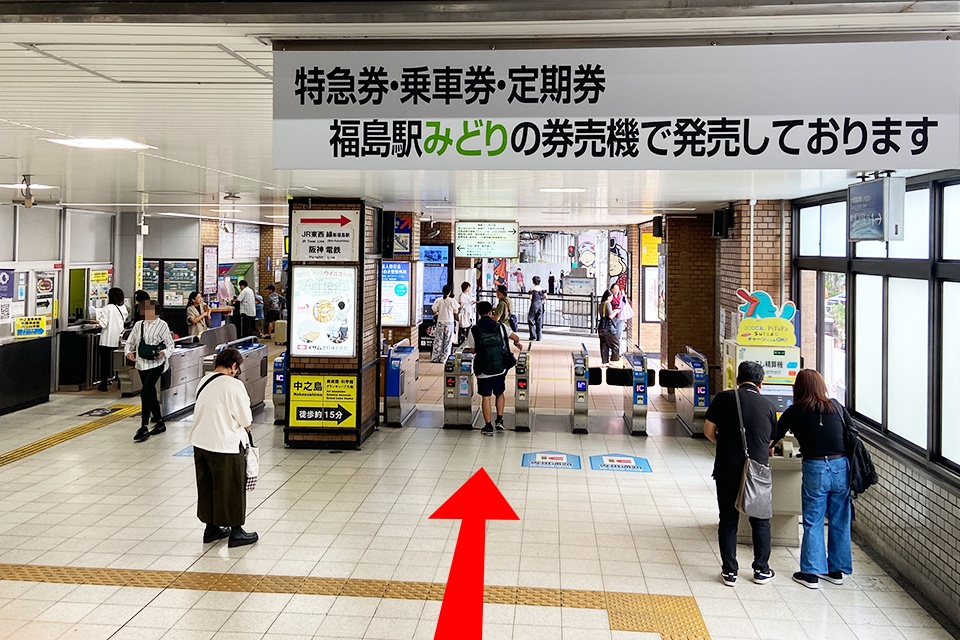 【01】JR大阪環状線「福島駅」 で降りたら、ホームから階段(あるいはエレベーター)を下りて 1階の改札口へ進んでください