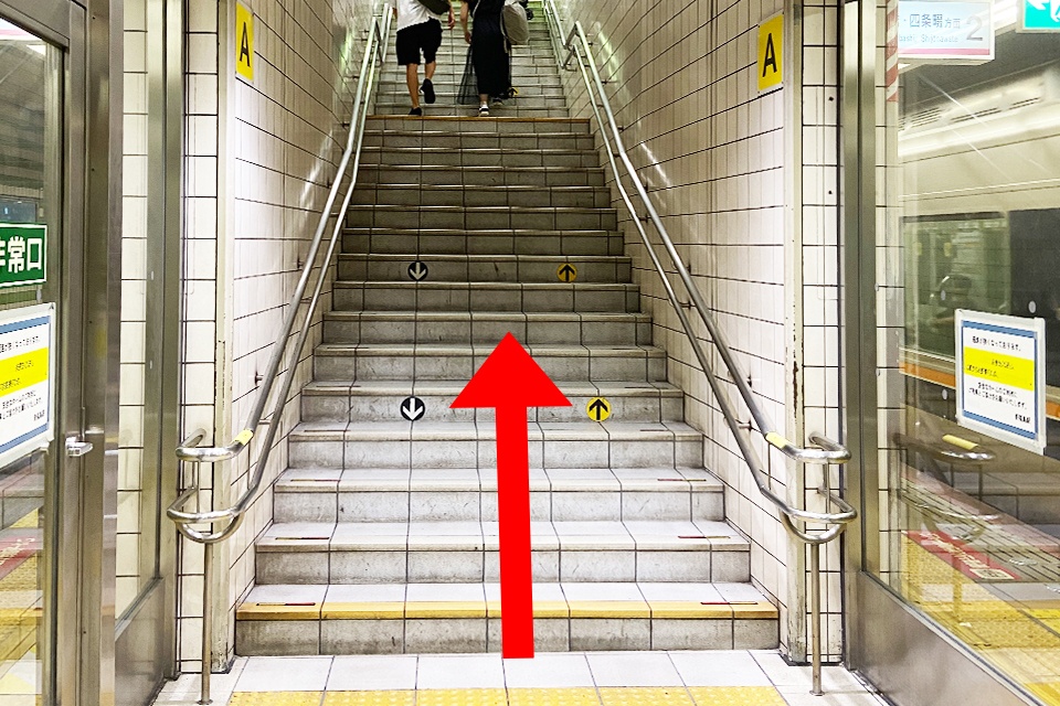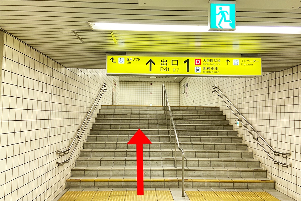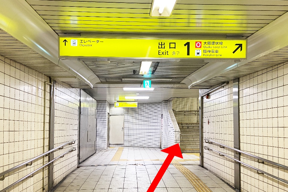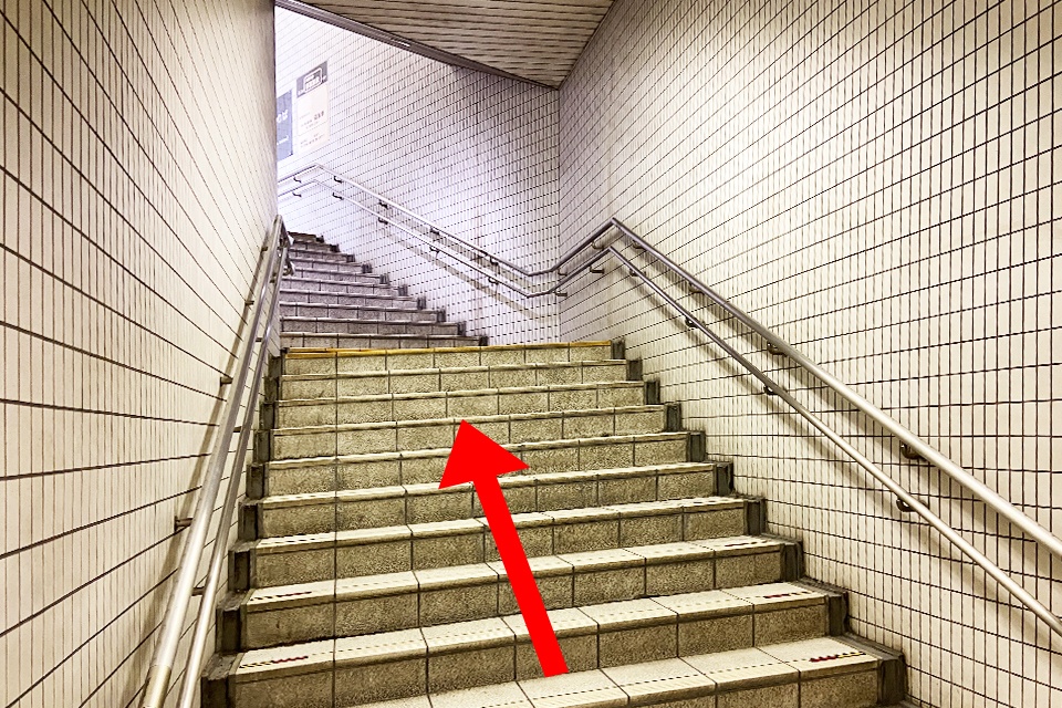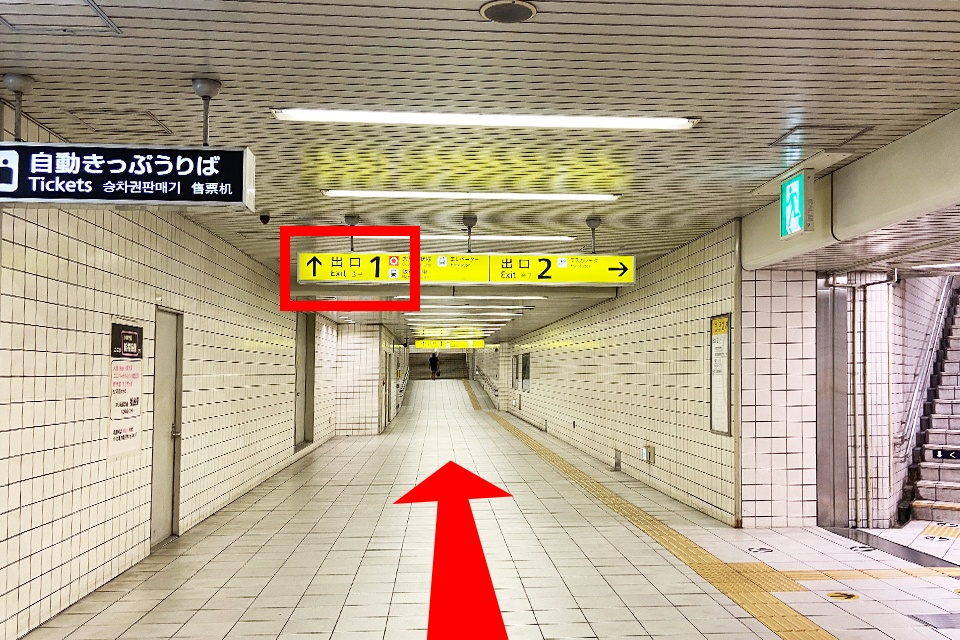 注)正面奥にはエレベーターがあります。エレベーターで地上に出られた場合は、下記【14】~【15】(タップすると移動します)までスキップしてください。