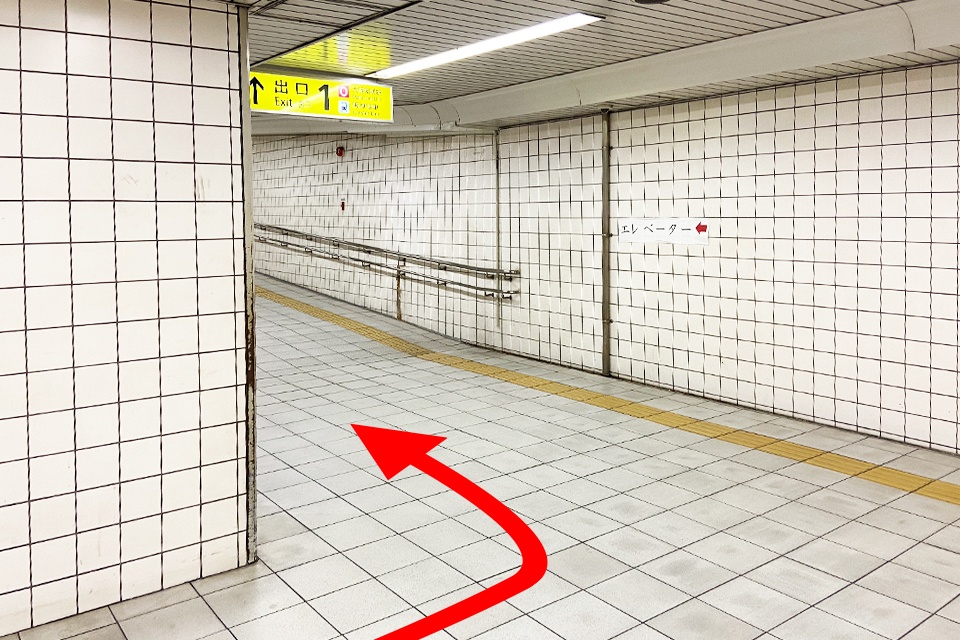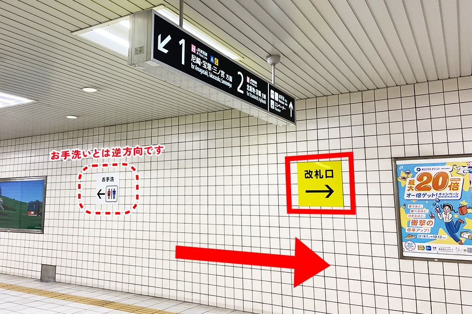 【02】壁面の案内のとおり改札口方面へ進んでください