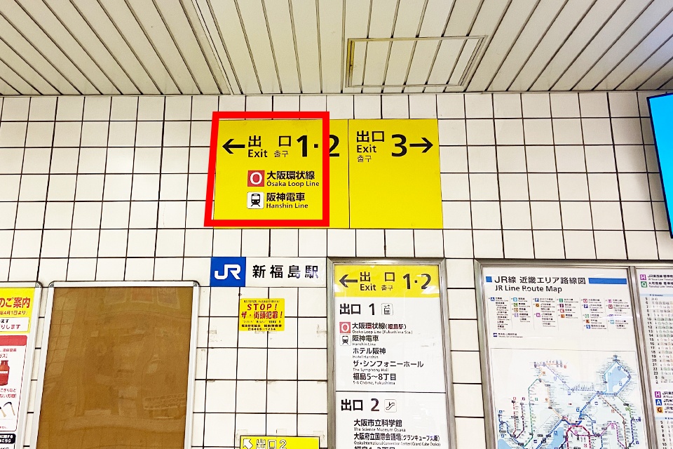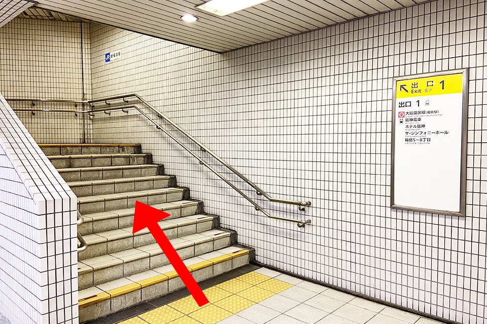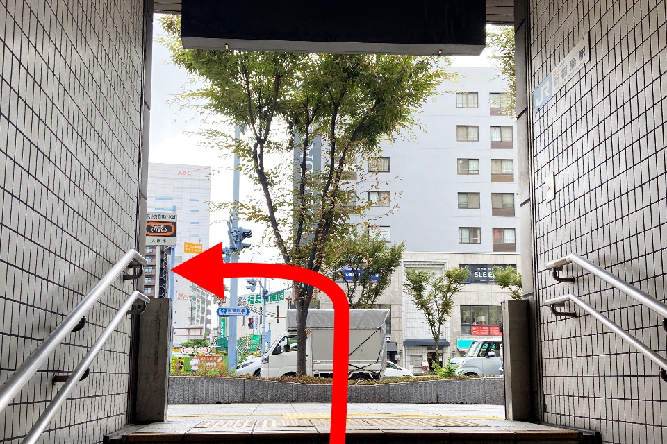 【01】JR東西線「新福島駅」 で降りたら、ホームから階段またはエスカレーター・エレベーターで改札階へ上ってください