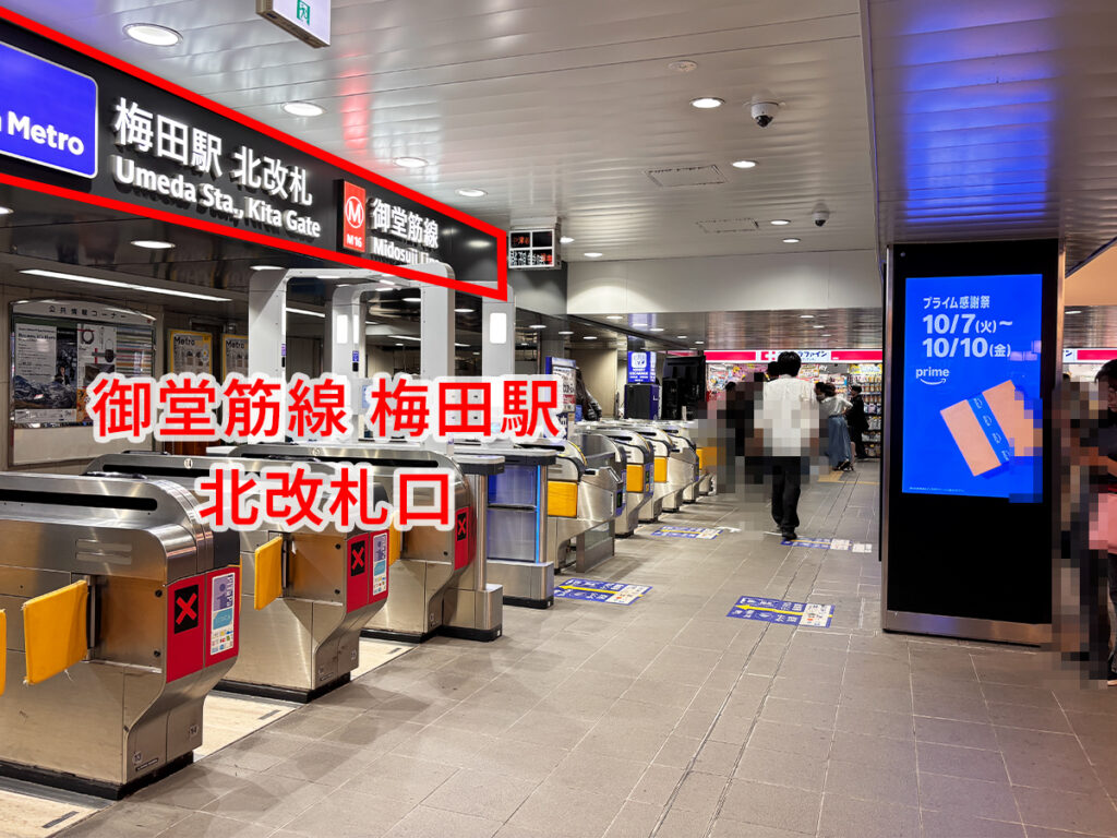 ※こちらは御堂筋線 梅田駅 北改札口を出口側から見たときの様子です