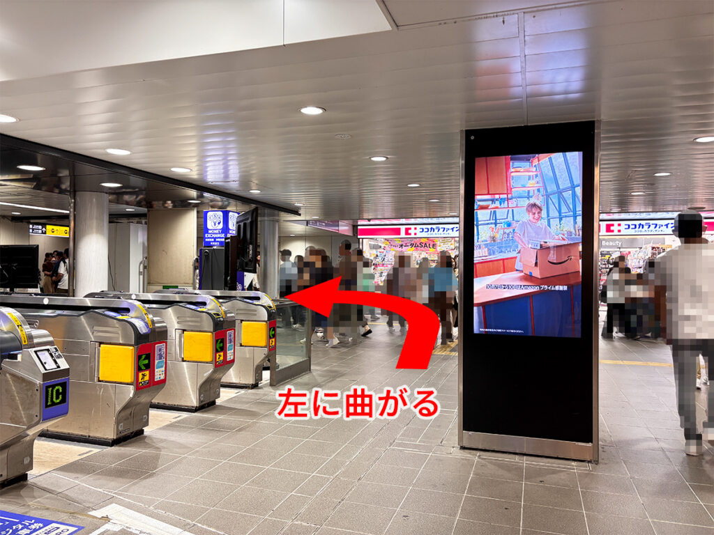 エスカレーターを下りたら、右に曲がってください